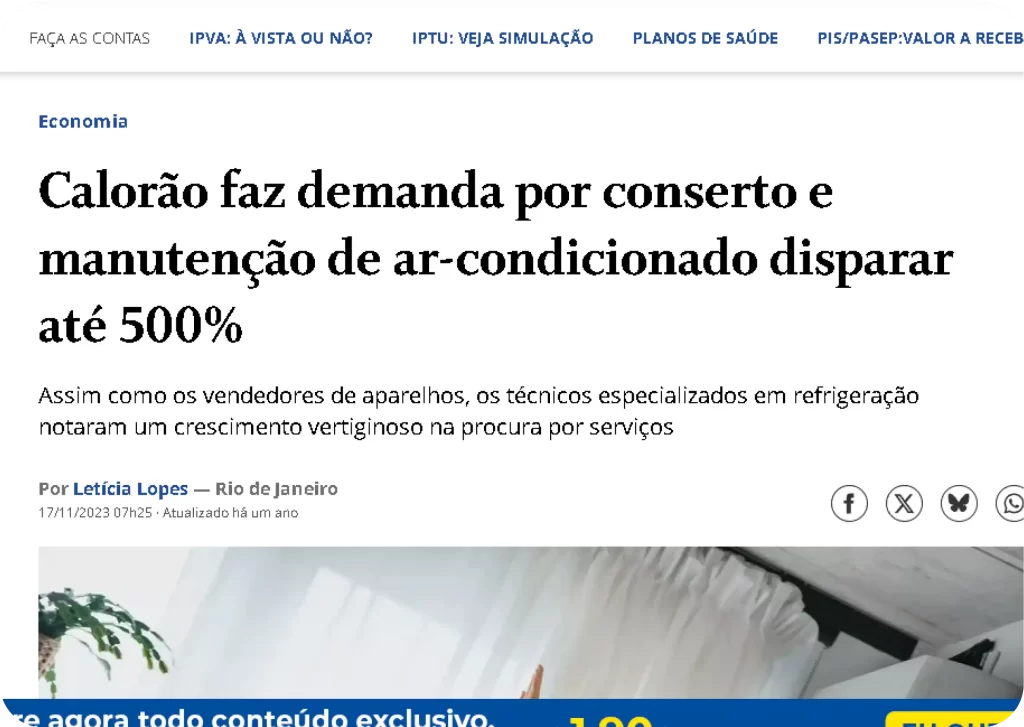 Empresas especializadas registraram aumento de até 500% na procura por serviços de climatização.